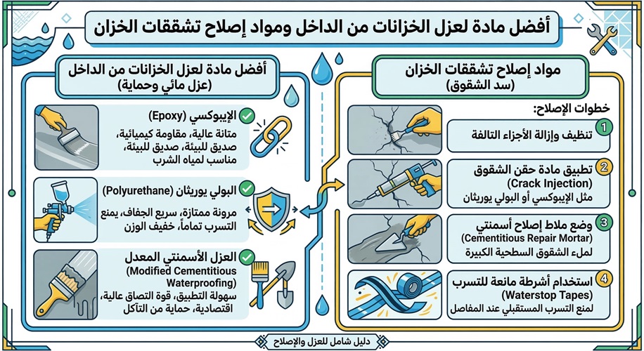 الدليل الشامل: أفضل مادة لعزل الخزانات من الداخل ومواد إصلاح تشققات الخزان 💧🛡️