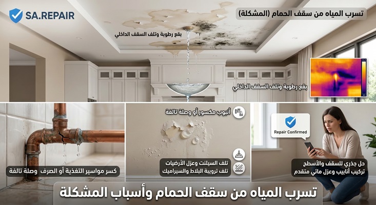 هذه المشكلة ليست مجرد تشوه بصري عابر، بل هي رسالة تحذيرية صارخة من هيكل منزلك بأن هناك خللاً يجب تداركه فوراً. يبحث الكثير من أصحاب المنازل عن إجابات واضحة حول موضوع تسرب المياه من سقف الحمام وأسباب المشكلة، وذلك لأن الفهم الصحيح لجذور المشكلة هو الخطوة الأولى والأساسية نحو الحل الجذري الذي يوفر المال والجهد. في هذا الدليل الشامل والمفصل من خبراء مدونة sa.repair، سنأخذك في جولة تشخيصية دقيقة لنكشف لك الأسرار المخفية وراء هذه المشكلة، وكيفية التعامل معها بأحدث التقنيات التكنولوجية. ✨